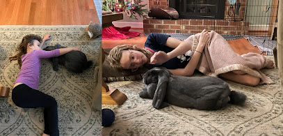 I will never forget the first time my sister met Winston. We were all in the kitchen and I could see my rabbit was getting nervous being around so many people, even though he was taking treats from people and accepting pets from everyone, so I said I was going to take him upstairs to his pen and my sister, thinking she was helping, leaned down to scoop him up for me. Before I could stop her she had picked him up and he freaked out and the next thing I knew he was over her shoulder and on her back. We both grew up with bunnies, and my sister knew very well how to pick him up and did nothing wrong, but with him being a big rabbit, he's harder to handle (and this was when he was still young and probably about only six or seven pounds!) and it can be dangerous if you aren't careful. He generally lets me carry him and is good for me, but I know how to hold him and to never try the "one-armed carry" and to never try carrying him with him balanced on my chest or anything like that.